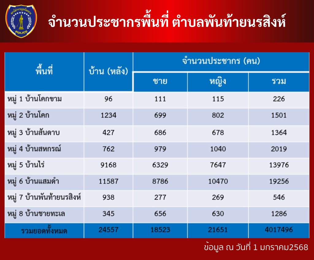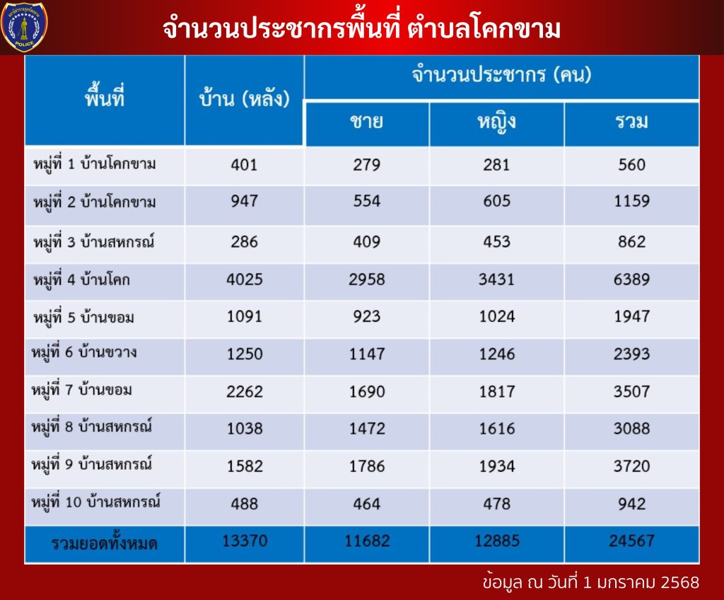 ข้อมูล ณ วันที่ 1 มกราคม 2568
