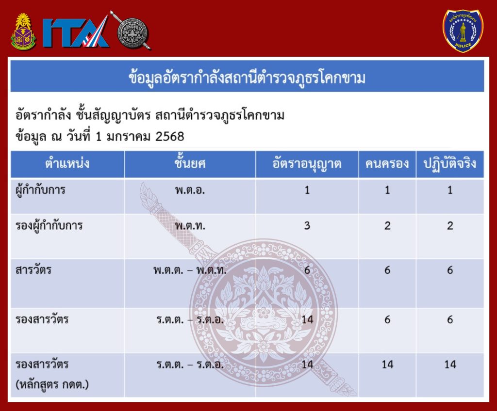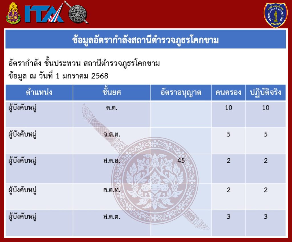 ข้อมูลอัตรากำลังของสถานีตำรวจภูธรโคกขาม